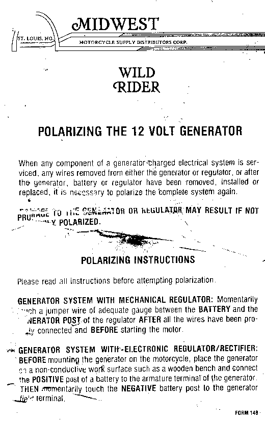 MANUFACTURER'S INFO ON GENERATOR POLARIZATION