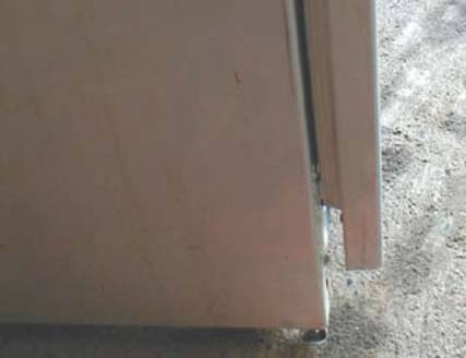 Snugs it right up. No, the three holes in the door were not a misguided attempt at using a hasp to do this job. It *was* for a hasp, but it was used to lock the fridge when it resided in the office break room. The side of the hasp on the main body of the fridge was glued on. No, it didn't work too well. |