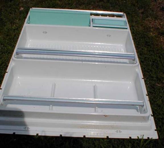 One thing I did notice were small vent holes under the upper trays and below the bottom shelf. I suspect they're there to limit condensation inside the door, so I added some 1/16" holes in the fiberglass about 6" from the top and bottom.