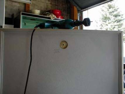 The 1/4" hole in my fiberglass panel was the same diameter as the pilot drill on a hole saw. |