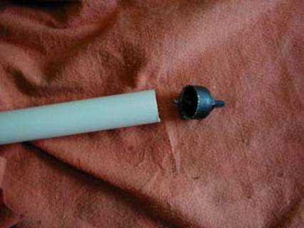 The hole saw was chosen because it was a close match to a piece of sch 40 PVC I had left from a plumbing project. The idea was to make a PVC spacer for between the outer metal door and the inner fiberglass panel, since the panel would flex quite a bit when the shank was tightened. Also, Scott Mac had recommended that I move the insulation away from the shank so it could stay cool from the inside air. |