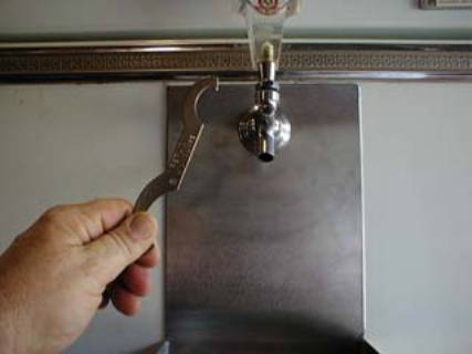 A special wrench tightens the faucet to the outside of the shank. |