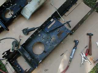 About the only thing close to a specialized tool for the project was a #6 roll pin punch to get the clutch/brake pedal linkage out and back into the new frame. The air ratchet speeded things up quite a bit.